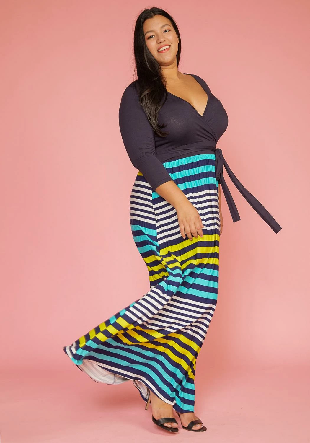 Colorful surplice maxi dress perfect for a cool sunny day.