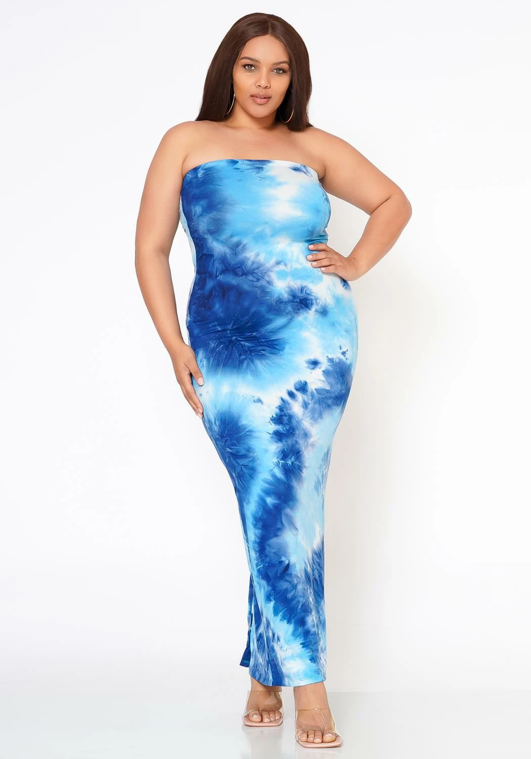 Dreamy tie dye plus size women’s maxi dress in bodycon tube fitting and butter soft material.