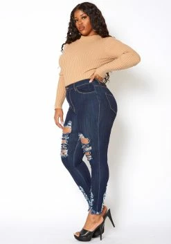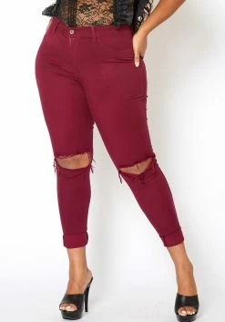 Vibrant Mid Rise Knee Distressed Plus Size Skinny Jean