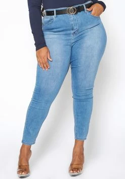 Vibrant Plus Size High Waisted Blue Wash Skinny Denim Jean