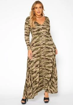 Asoph Plus Size Camo Print Fit & Flare Maxi Dress
